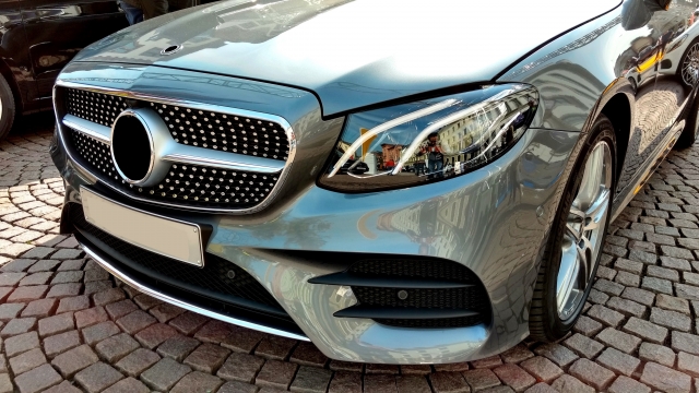 ③ブレーキパッドとディスクローターについても対策する。ベンツは通常、パッドがローターを削ることによって高速域での制動力を確保している。しかし、日本ではアウトバーンのあるドイツと異なり、そこまでの性能は要求されない。また、ストップアンドゴーが多いため、パッドがローターを削るやり方だと非常に早くパッドとローターの交換が必要となる。これも高額の修理費がかかる(20万円程度)これについては、EUの安全規格ECE R90を取得した、ローターを削る量が少ないパッドを使用し、長期間ローターの交換を不要にする。ローターについても、純正ディスクローターは高いので、OEMメーカーの同等品を使い、コストを下げる。ローターのメーカーは、ATE社を採用。