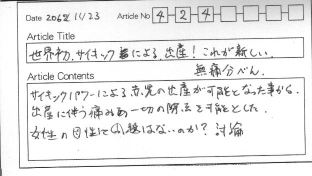 サイキックパワーによる赤児の出産が可能になったことから、出産に伴う痛みの一切の除去を可能とした。