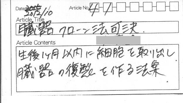 生後1ヶ月以内に細胞を取り出し臓器の複製を作る法案