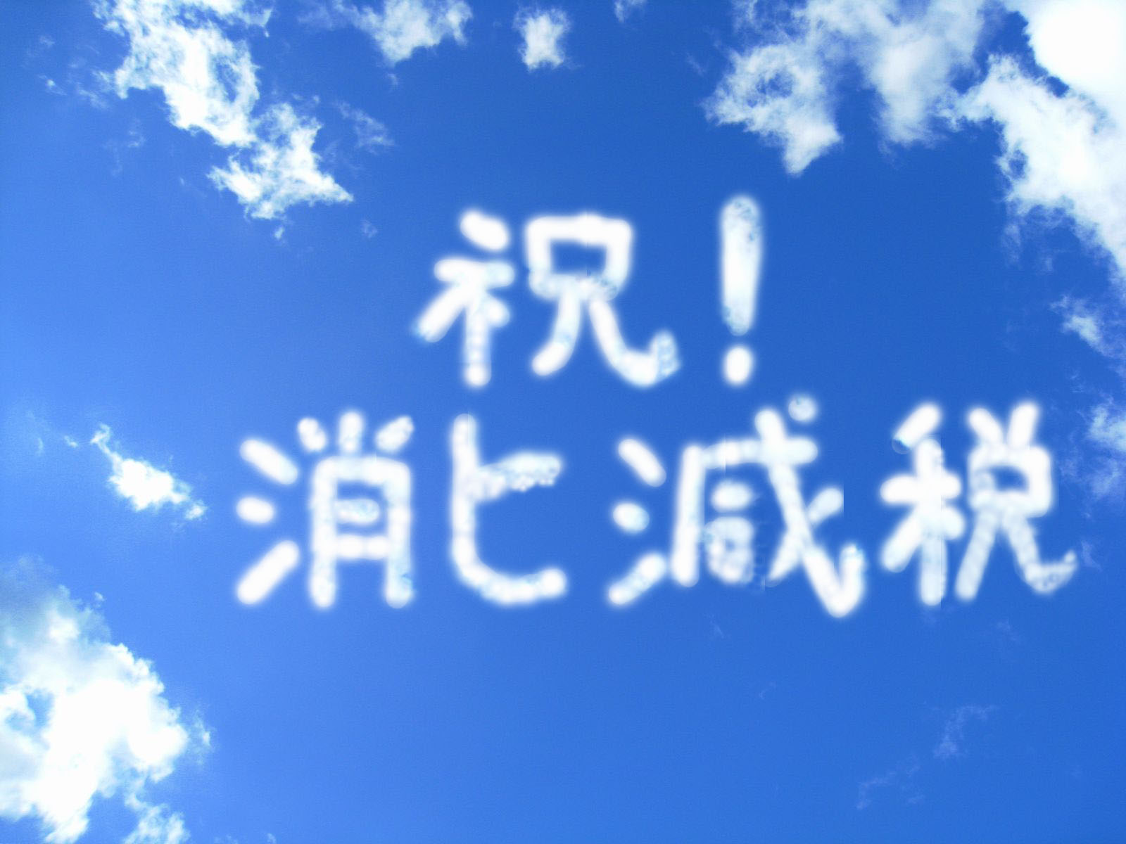 なんとその雲は「祝!消ヒ減税!」という文字の形になっていたのだ。形を保っていたのはわずか10分ほどであったが、多くのマスコミが注目し、携帯電話で上をむいて撮影する人の姿が目立った。